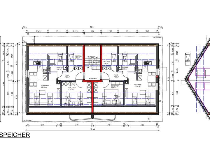 Aufteilung der Einheiten auf 2 Etagen mit gleicher Größe: