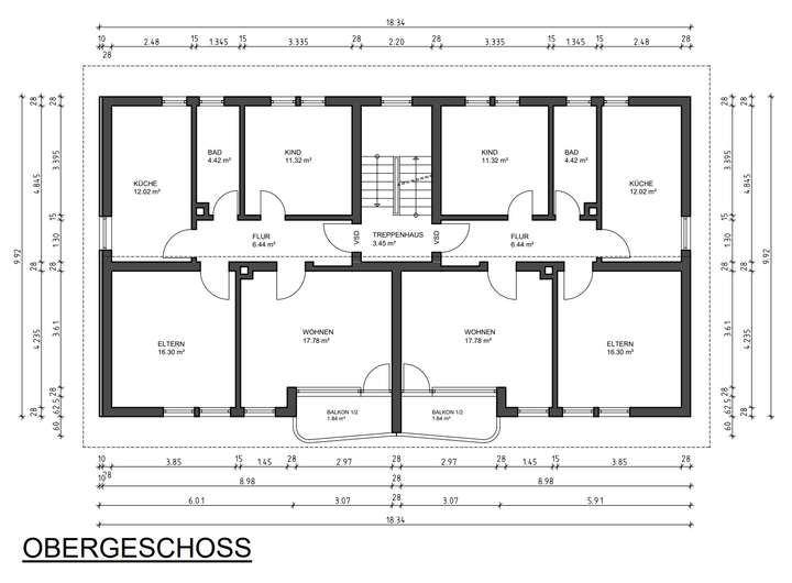 OG: 2 x 3 Zi-Whg. zu je 70,13 m²