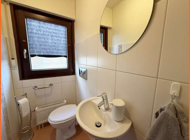 Das Haus bietet ein modernes, großzügiges Badezimmer sowie ein separates, helles Gäste-WC.