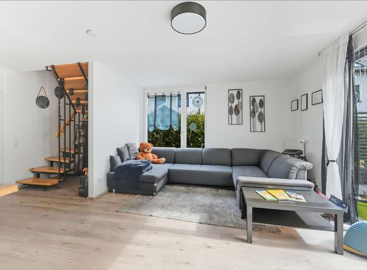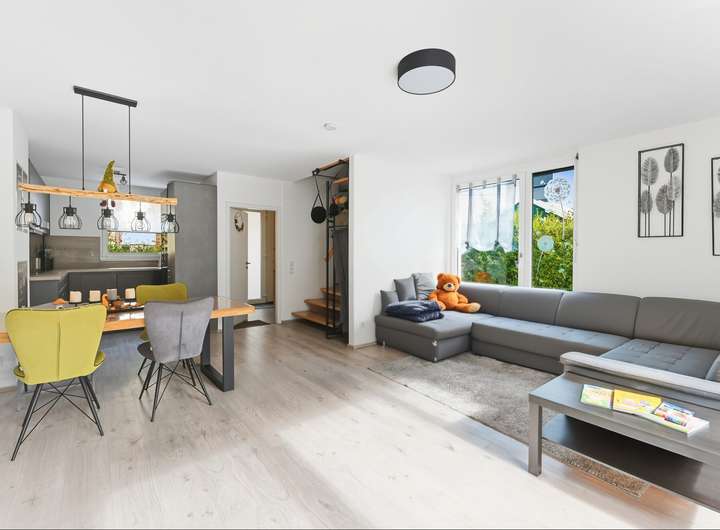 Besonderheiten: Die Aussicht vom Wohnzimmer sorgt für ein behagliches Wohngefühl und Nähe zur Natur. Die Lage eignet sich besonders für Familien, Paare und Naturliebhaber, die Wert auf Ruhe, Grünflächen und kurze Wege in eine größere Infrastruktur legen.