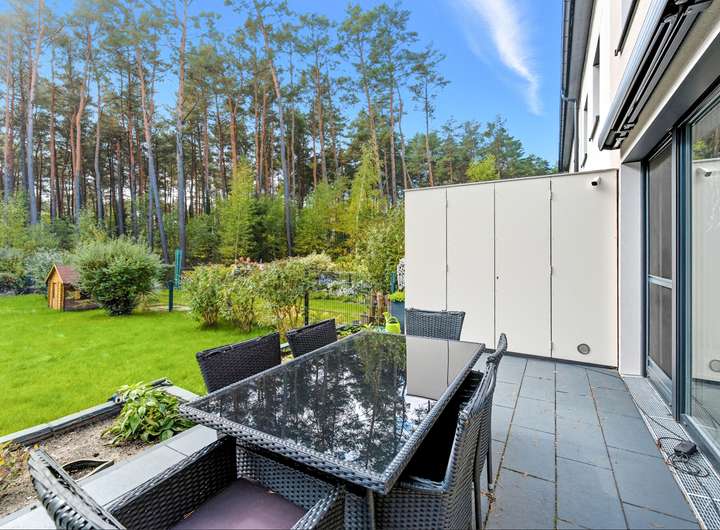 Terrassenzugang mit Blick auf den Garten und den angrenzenden Wald