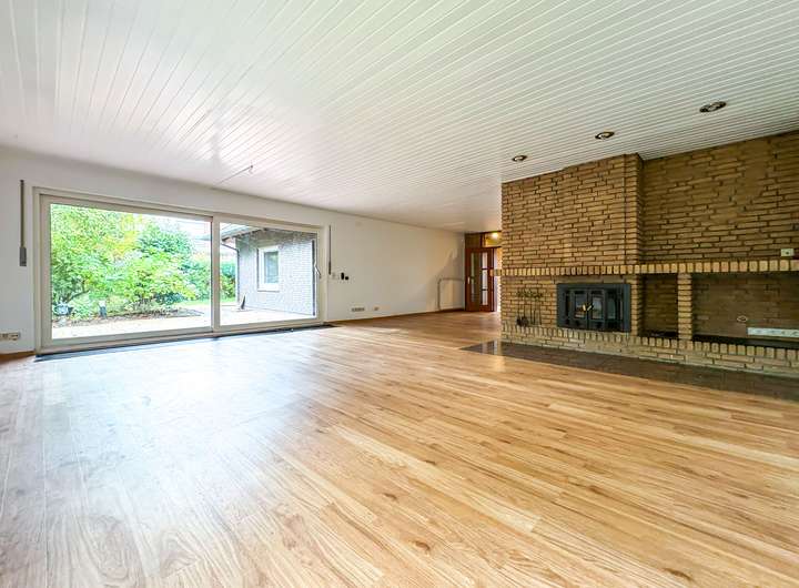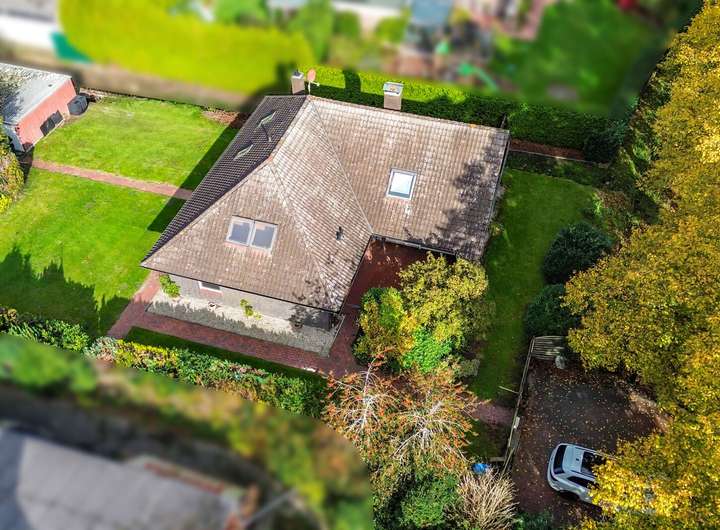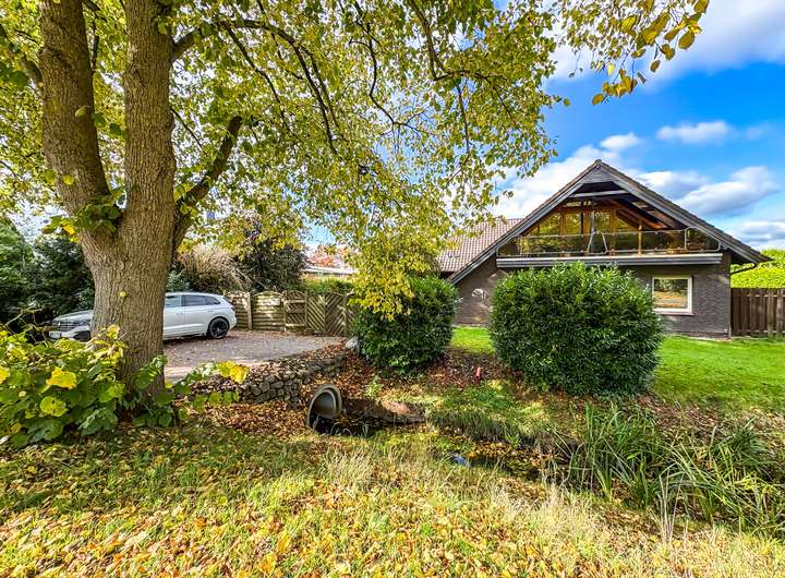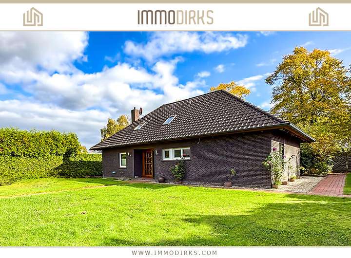 Bingum: Attraktiver Bungalow mit 2 Kaminen, Sonnenterrasse & großem Garten