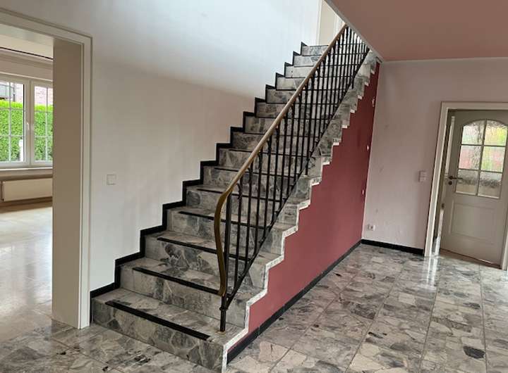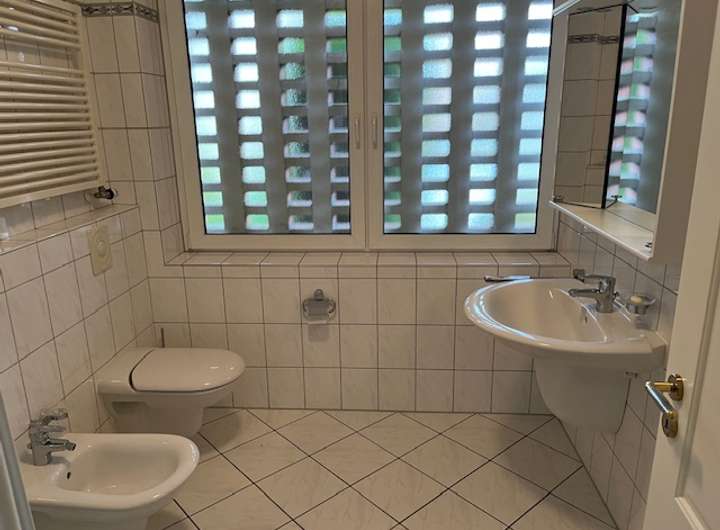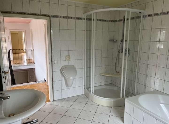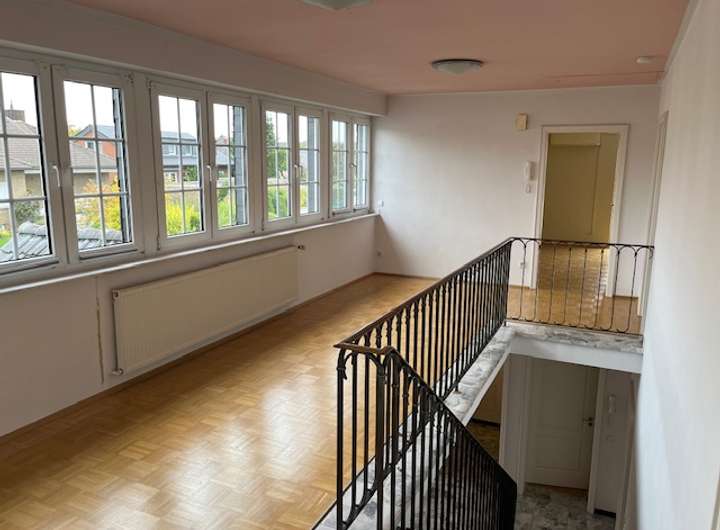 Aufteilung im Erdgeschoß: großzügiger Dielen-Eingangsbereich, großer Wohn-/Essbereich über Eck mit Kamin und Zugang zu den zwei überdachten Terrassen und zur Rasenfläche, Küche, Gästezimmer mit integriertem Duschbad mit Gasduschkabine, Gäste-WC, Garderobennische, Abstellraum: im Dachgeschoß: Galerie, Elternschlafzimmer mit Südbalkon, Kinderzimmer, Arbeitszimmer, großes Bad mit Wanne/Dusche/WC/Bidet/Urinal und Gasduschkabine, zwei Abstellräume. Im Kellergeschoß: Diele, Abstellräume, Heizungskeller, Wasch-/Trockenkeller. Das Haus ist bereits frei und kann nach Absprache angemietet werden. Es wird in einem einzugsbereiten Zustand, alle Wände und Decken weiß gestrichen, übergeben. Vereinbaren Sie eine Besichtigung.