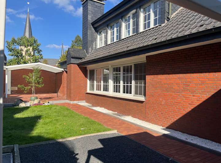 Mitten im Ortskern liegt dieses unterkellerte, großzügige und hochwertig ausgestattete Einfamilienhaus mit überdachtenTerrassen, kleiner Rasenfläche und Doppelgarage. Ausstattung: Gasbrennwertheizung, Kunststofffenster, elektrische Rollläden, Marmor-/Echholzparkettböden, Kamin, Gallerie, weiße Stiltüren, zwei Komfortbäder und ein Gäste-WC jeweils mit Fußbodenheizung, Glasfaser, Kabelfernsehen und vieles mehr. Auflage: Paar ab mittlerem Alter, keine Tierhaltung