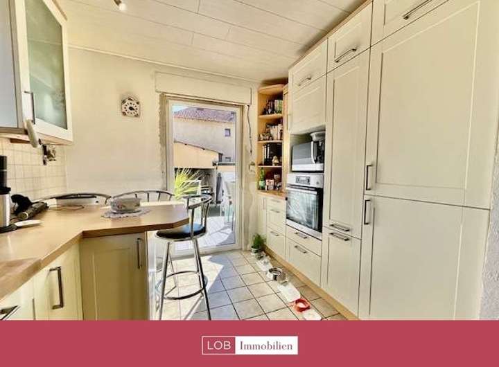 Das Erdgeschoss bietet ein großzügiges Wohnzimmer, ein Gäste-WC und ein tageslichtdurchflutetes Badezimmer mit Dusche. Zusätzlich finden sich ein gemütliches Esszimmer sowie eine moderne Küche mit direktem Zugang zum Balkon – perfekt für gemeinsame Mahlzeiten im Freien.