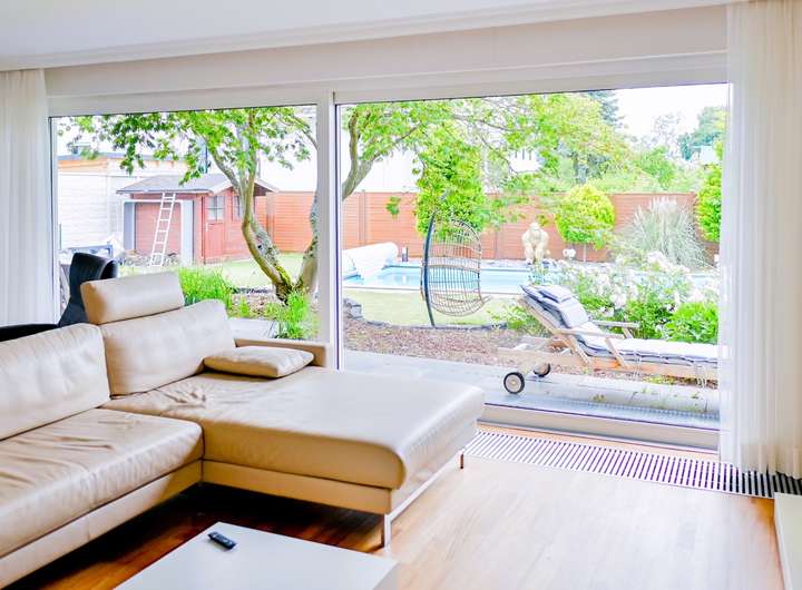 - Große Fensterfronten mit Blick auf den Pool