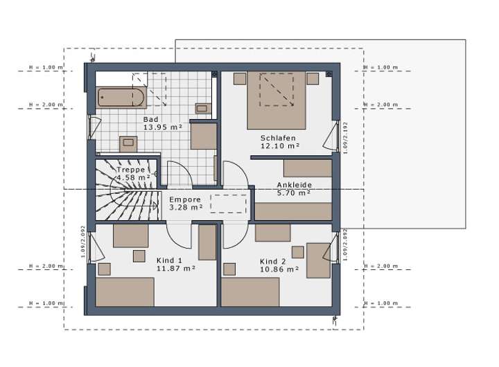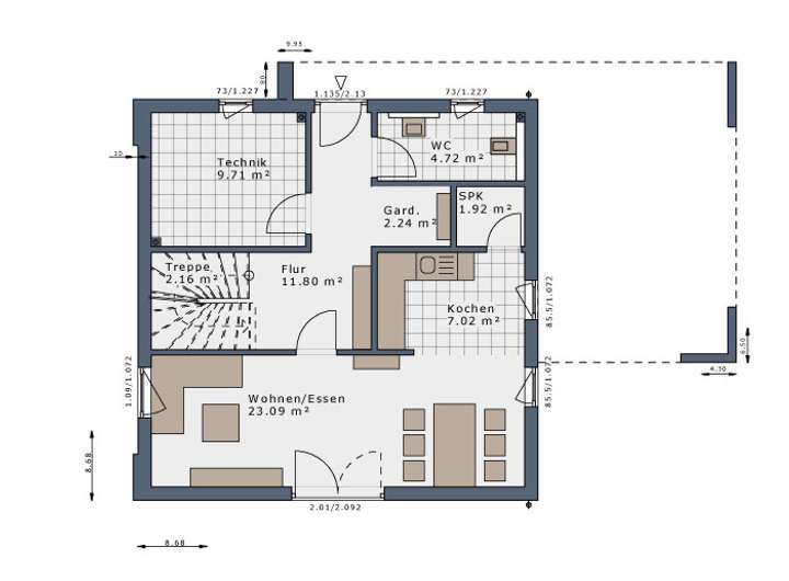 Anbauteile, Carport, Garage und Keller können Extras sein, die als Sonderausstattung angeboten werden. Abbildungen, Grundrisse und Flächenangaben sind beispielhaft und können Extras zeigen. Flächenangaben nach DIN 277.