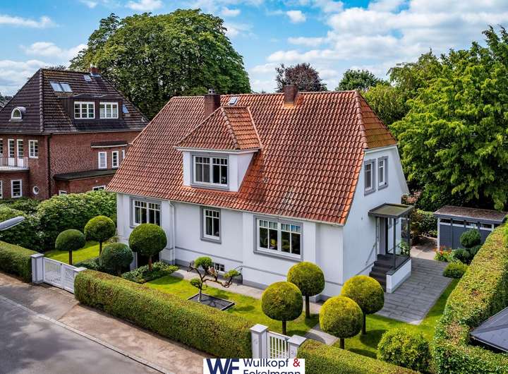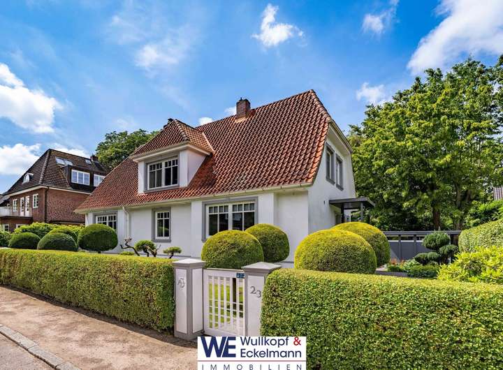 Dieses außergewöhnlich gepflegte Einfamilienhaus aus dem Jahr 1936 verbindet stilvolle Altbauarchitektur mit großzügigem Wohnkomfort und liegt in begehrter, ruhiger Lage von Groß Flottbek. Auf einem ca. 510 m² großen Grundstück bietet das Haus eine Wohnfläche von rund 197 m² und wurde im Zuge einer umfassenden Sanierung zwischen 1985 und 1988 in seiner Grundsubstanz modernisiert sowie um einen geschmackvollen Erweiterungsbau ergänzt.