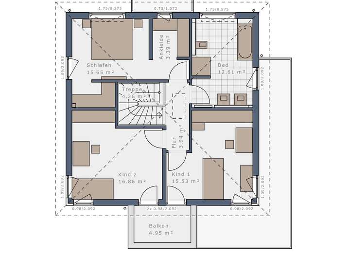 Anbauteile, Carport, Garage und Keller können Extras sein, die als Sonderausstattung angeboten werden. Abbildungen, Grundrisse und Flächenangaben sind beispielhaft und können Extras zeigen. Flächenangaben nach DIN 277.