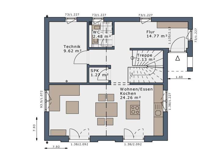Diesem Angebot liegt die beliebte Schwabenhaus-Ausbaustufe "Fast-Vollendet" zugrunde. Diese kann entsprechend Ihrer geplanten Eigenleistungen angepasst werden.