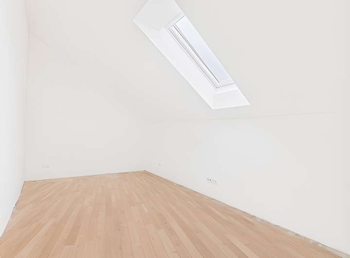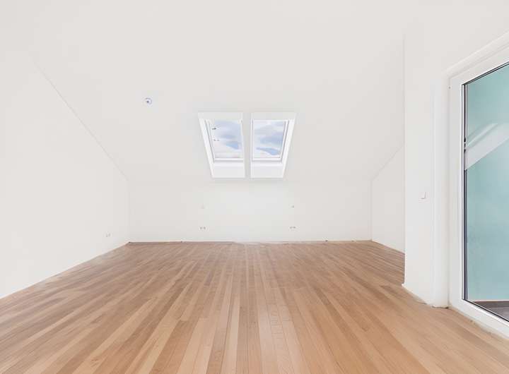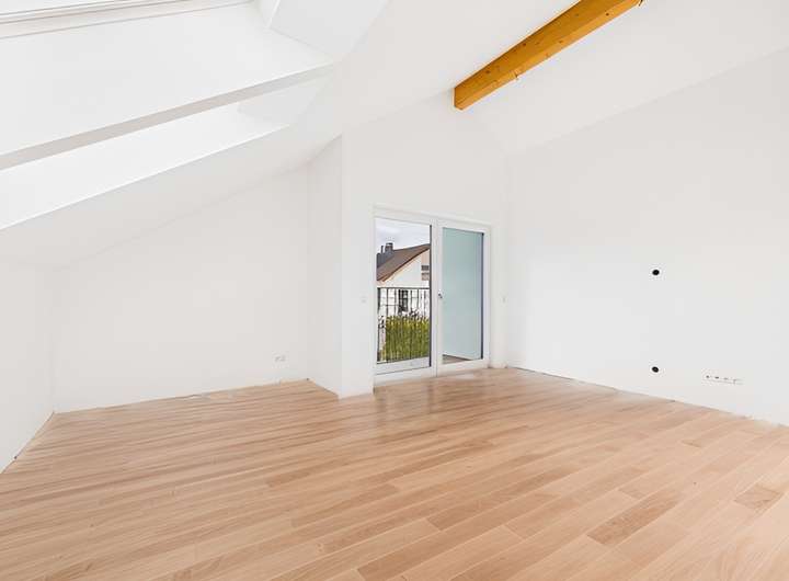 Im Obergeschoss wird in den nächsten Wochen Eichenparkett verlegt. Die gezeigten Bilder dienen ausschließlich der Veranschaulichung des künftigen Zustands.
