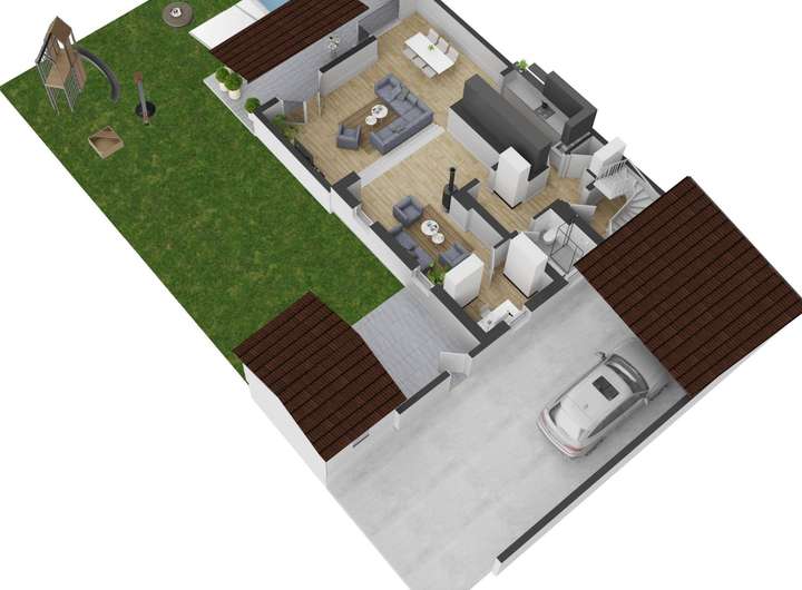 With approximately 210 m² of living space on a 500 m² plot, this home offers generous room for families, couples or discerning individuals. Five spacious rooms, including a light-flooded living and dining area of about 70 m², create an open and inviting atmosphere. The modern fitted kitchen is equipped with high-quality branded appliances and blends seamlessly into the elegant interior design. Two tastefully designed bathrooms further underline the high level of comfort.