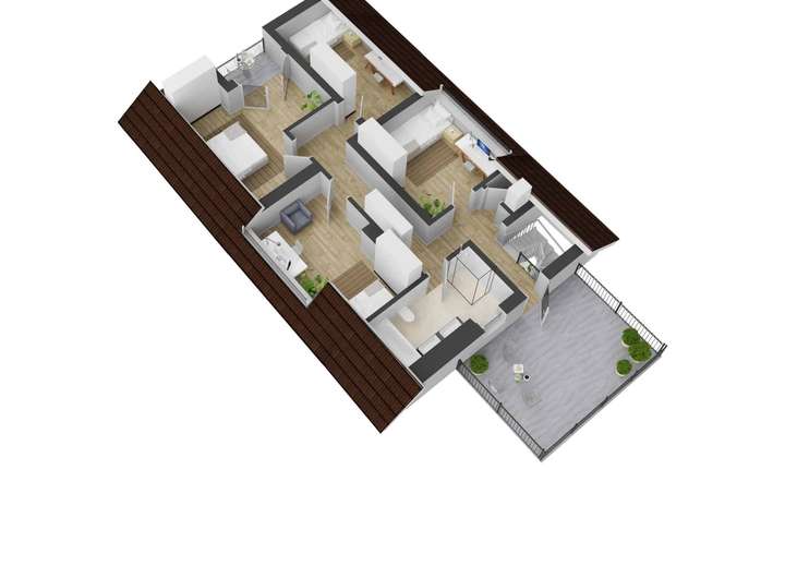 From the sunny terrace you can enjoy a beautiful view of the greenery. Here you can fully appreciate the tranquillity of the surroundings and the privacy of the property.