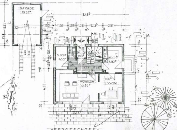 + angenehm, eingewachsenes Grundstück in Höhe von rd. 608 m²