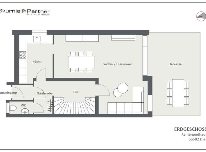 + EG: Wohnzimmer, Küche, WC und Windfang