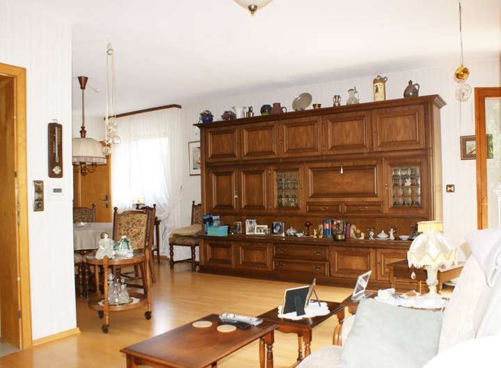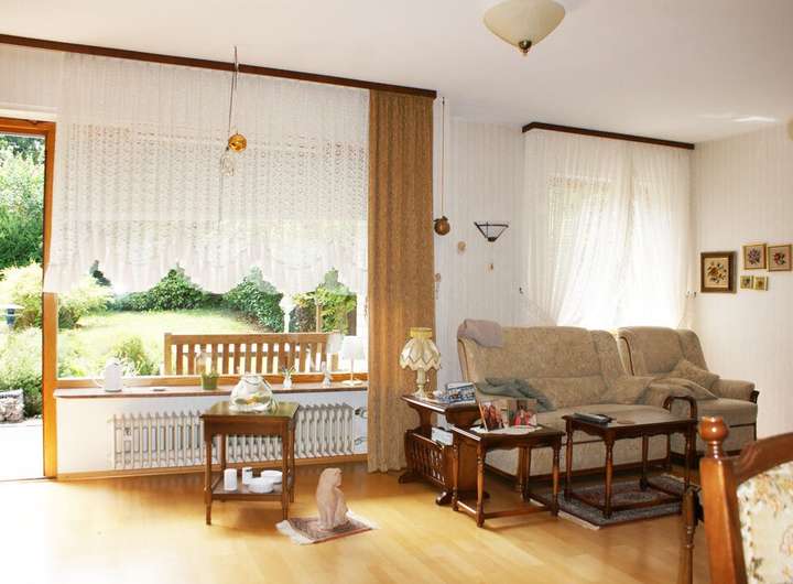 Das Wohnzimmer ist sehr groß. Es bietet viel Platz für einen großen Essbereich und für eine ausgiebige Wohnlandschaft. Über die große Fensterfront mit Terrassentür betritt man die breite und tiefe Terrasse, mit großzügigem Platz für einen großen Tisch und Grill. Die Süd-Ausrichtung des Hauses garantiert wunderbare und sonnenverwöhnte Sommertage und -abende. Einfach perfekt für das Familienleben.