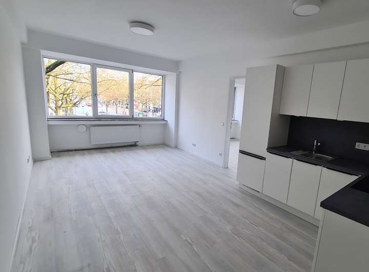 Dieses neu hergestellte Apartment in angenehmer Größe bietet Wohnen mit Neubaukomfort. Über einen langgezogenen Flur mit Platz für eine Bildergalerie und Garderobe erreichen Sie den Wohnbereich mit großem Fenster. Hier ist der Kochbereich mit neuer Einbauküche integriert. Ein Tisch und zwei Stühle stehen auch schon bereit. Das Schlafzimmer grenzt an und hat ebenfalls eine große Fensterfront. Das Bad en Suite mit Walk-In-Dusche und modernen Fliesen wird Ihnen auch gefallen.