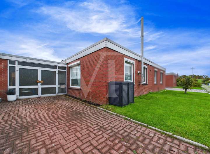 Diese Bungalowhälfte befindet sich am Rande der Ferienhaussiedlung in Dornumersiel in einer ruhigen Lage. Die Haushälfte profitiert durch die Randlage von einem unverbauten Blick auf den Vordeich.