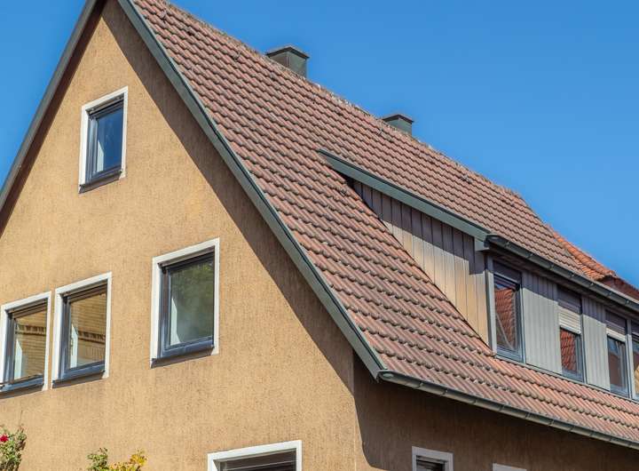 1983 wurde das Haus aufgestockt und damit ist ds Dach auch aus 1983.