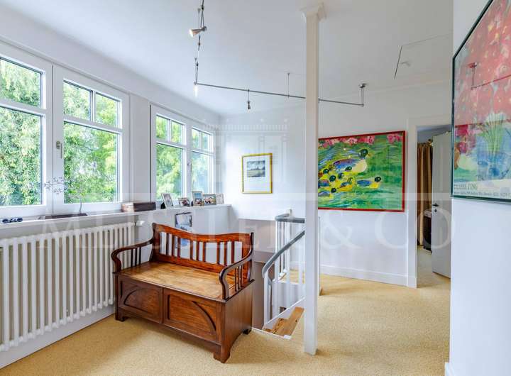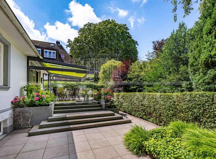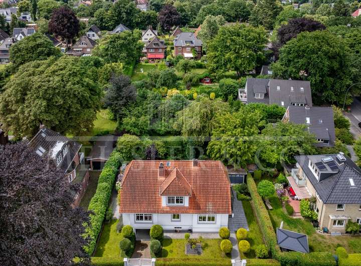 Diese besondere Immobilie liegt in einer der begehrtesten Adressen Hamburgs, im charmanten Stadtteil Groß Flottbek. Das Viertel ist geprägt von seiner historisch gewachsenen Villenbebauung, grünen Straßen und von der unmittelbaren Nähe zur Elbe. Hier verbindet sich ein gehobenes repräsentatives Wohnumfeld mit einer hohen Lebensqualität für Familien.