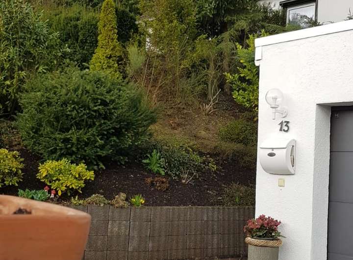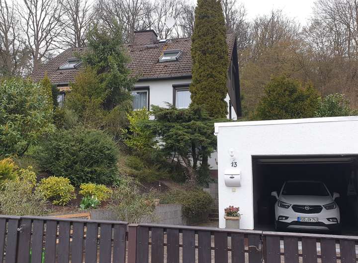 ausgestattet. Das Haus ist voll unterkellert. Durch die Hanglage bietet der Keller die Möglichkeit einer Einliegerwohnung mit separatem Zugang.
