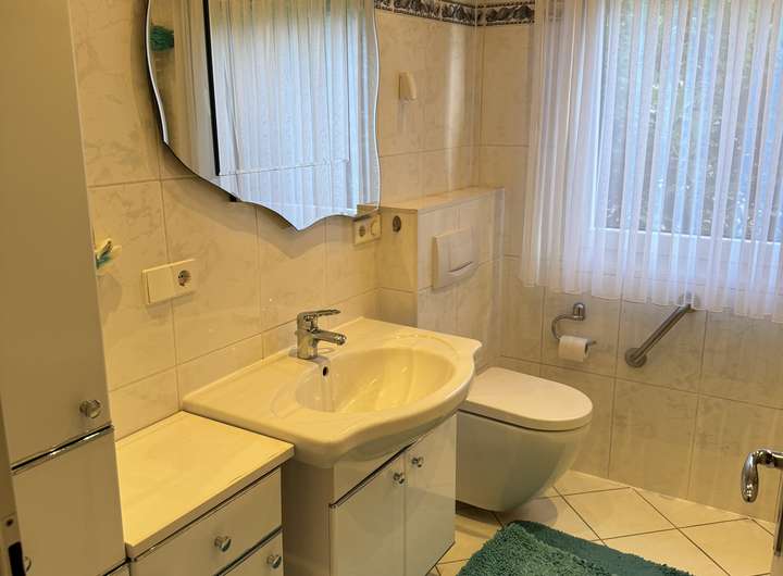Das Badezimmer im Erdgeschoss sowie Gäste WC sind geschmackvoll saniert und in modernen ansprechenden Standart.