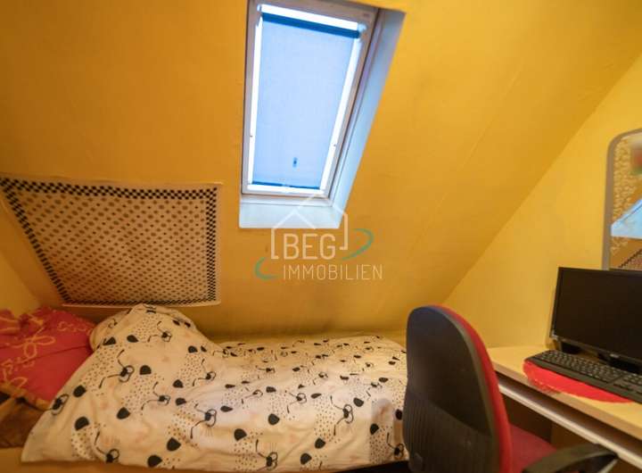 Im Dachgeschoss steht ein Tageslichtbad mit Badewanne, WC und Waschmaschinenanschluss zur Verfügung. Die Einliegerwohnung verfügt über zwei Zimmer, einen separaten Eingang sowie eigene Versorgungsmöglichkeiten, was die Eigenständigkeit dieser Einheit unterstreicht.