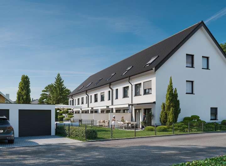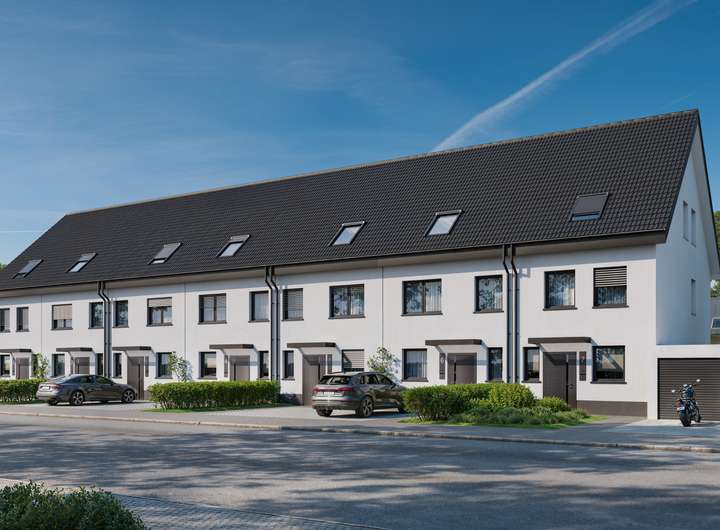 Hier planen wir für Sie traumhaft schöne Einfamilienhäuser als Reihenhäuserhaushälfte im modernen Stil mit großzügigen, lichtdurchfluteten Räumen durch bodentiefe Fenster Elementen in unverbaubarer Sonnenausrichtung.