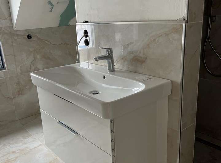 Im Bad, G-WC und in der Küche freuen Sie sich über moderne, pflegeleichte Fliesen.