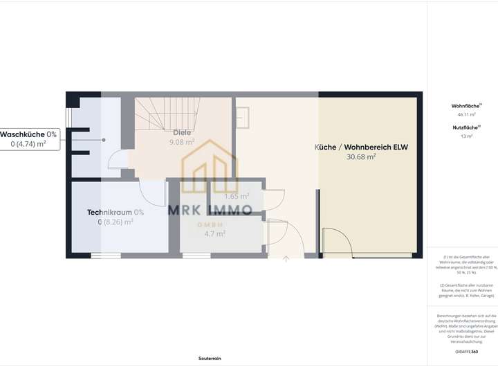 Im Souterrain befindet sich eine separate Einliegerwohnung mit eigenem Zugang – ideal für Gäste, Berufspendler oder zur Vermietung. Hier stehen eine eigene Küche, ein Bad sowie ein separater Wohnbereich zur Verfügung.