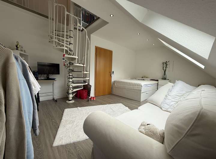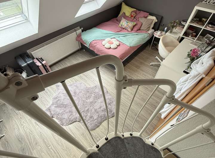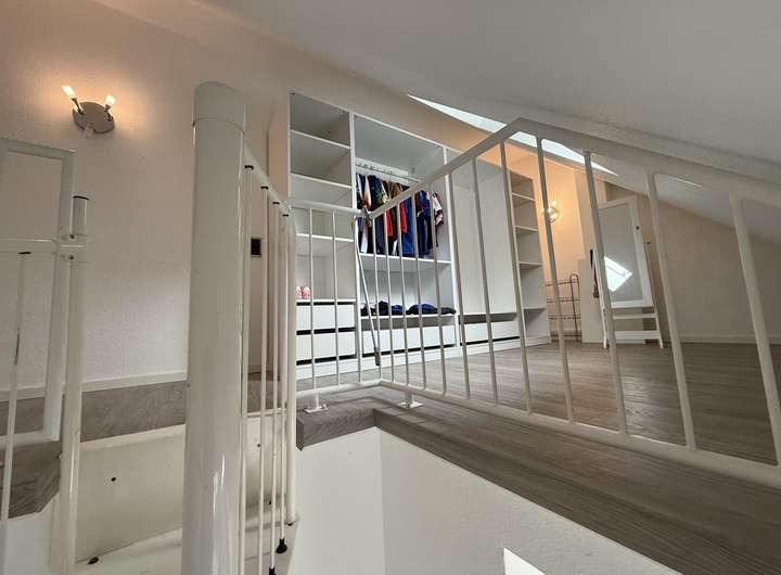 • Dachgeschoss mit zusätzlichem Stauraum: Beide oberen Zimmer verfügen über eine Wendeltreppe, die zu praktischen Abstellflächen führen – ideal für Kleidung oder saisonale Nutzung