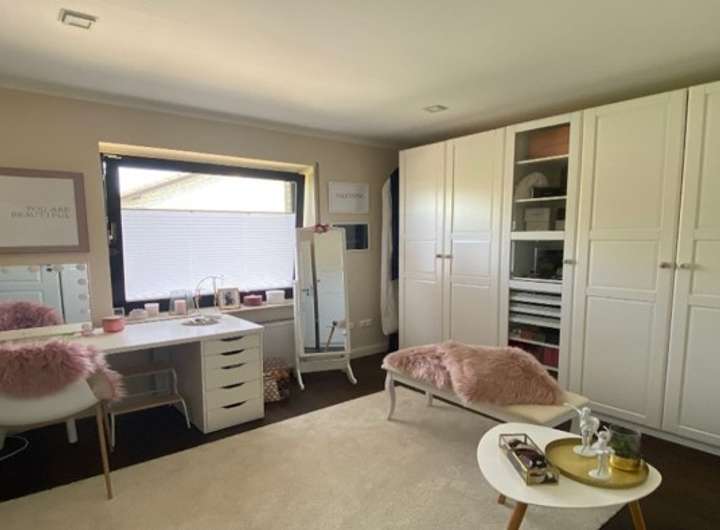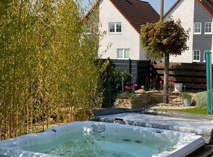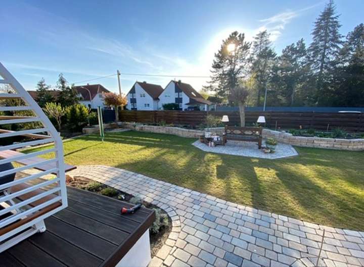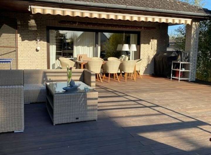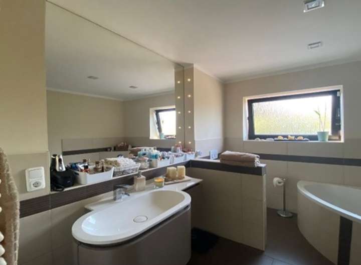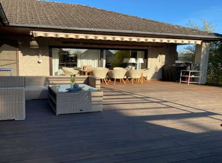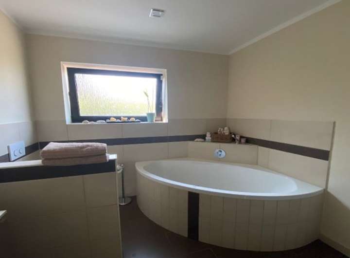 Exklusiver Bungalow mit Whirlpool, Kamin und großzügiger Tropenholz-Terrasse – Wohnen auf einer Ebene mit Stil! Willkommen in Ihrem neuen Zuhause! Dieser moderne und hochwertig ausgestattete Bungalow überzeugt durch eine gelungene Kombination aus Komfort, Design und Wohnqualität. Auf einer Wohnfläche von ca. 150 m² und einem Grundstück von 774 m² erwartet Sie ein echtes Wohlfühlambiente – ideal für alle, die das Leben auf einer Ebene mit Echtholz Parkett genießen möchten. Highlights der Immobilie: Großzügige Wohnfläche (ca. 150 m²) mit durchdachter Raumaufteilung Weitläufiger, lichtdurchfluteter Wohn- und Essbereich mit zwei direkten Zugängen zur Terrasse Moderner Kamin im Wohnzimmer – sorgt für wohlige Wärme und eine behagliche Atmosphäre in der kalten Jahreszeit Luxuriöser Whirlpool (Jacuzzi) – perfekt zum Entspannen und Abschalten Exklusive 90 m² große Terrasse aus hochwertigem Tropenholz – ideal für gesellige Abende und sonnige Stunden im Freien Pflegeleicht angelegter Garten mit viel Grün und Privatsphäre Moderne echtholz Einbauküche mit hochwertigen Geräten Große Fensterfronten sorgen für helle, freundliche Räume und einen schönen Ausblick auf Terrasse und Garten Der großzügige Keller bietet dank einer Deckenhöhe von ca. 2,30 m ein hervorragendes Raumgefühl und vielfältige Nutzungsmöglichkeiten. Er ist nicht nur funktional, sondern auch wohnlich gestaltet und umfasst: Gäste-WC sowie Hochwertige Materialien und Ausstattung in allen Bereichen Grundstück & Außenbereich: Das 774 m² große Grundstück bietet Ihnen ausreichend Platz zum Entspannen, Gärtnern oder Feiern mit Familie und Freunden. Der liebevoll gepflegte Garten fügt sich harmonisch in die Umgebung ein und rundet das Gesamtbild dieses außergewöhnlichen Bungalows ab. Fazit: Dieser Bungalow ist ein wahres Schmuckstück für alle, die modernen Wohnkomfort, stilvolles Design und eine ruhige Lage zu schätzen wissen. Einziehen, wohlfühlen und genießen – hier wird jeder Tag zum kleinen Urlaub!