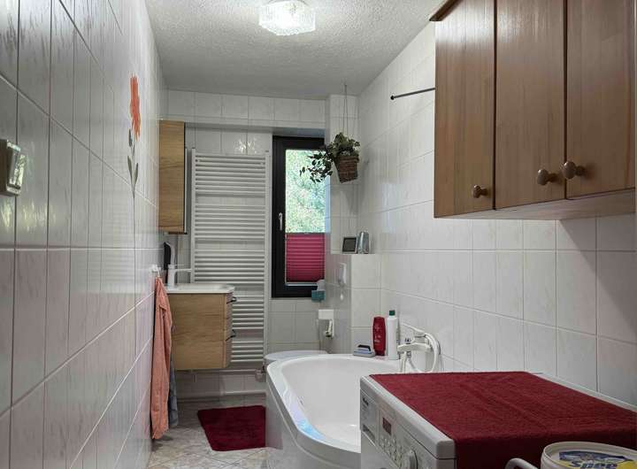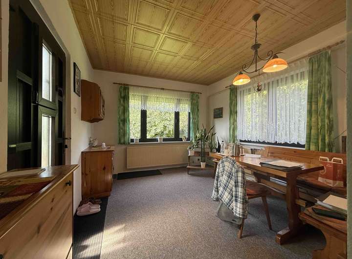Das EG ist aufgeteilt in Veranda, Flur, Küche, Wannenbad mit Fenster, Wohnzimmer und 2 weiteren Zimmern.