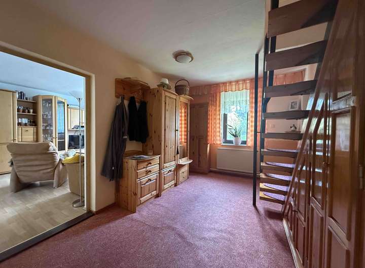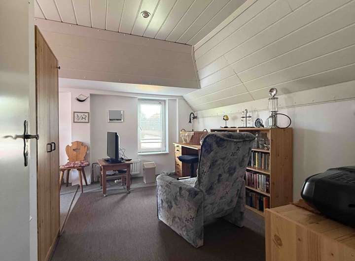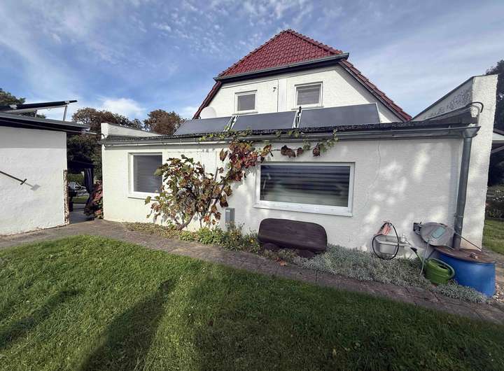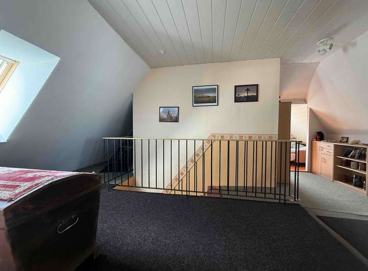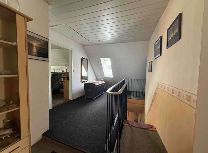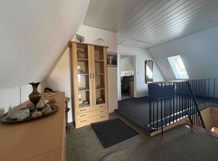 Es verfügt über eine Wohnfläche von ca. 120 m², die sich auf zwei Etagen und Spitzboden verteilen.
