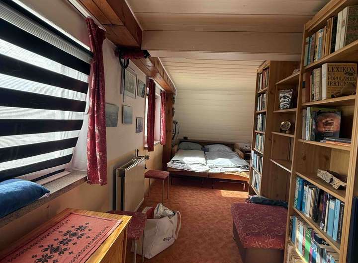 ca. 2010 Spitzbogen zum Begehen ausgebaut, neue doppelt verglaste Iso-Fenster eingesetzt, ein Wintergarten errichtet.