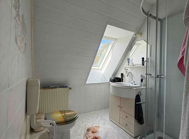 Das OG bietet einen Flur, Heizungsraum, Duschbad mit Fenster und zwei weitere Zimmer.