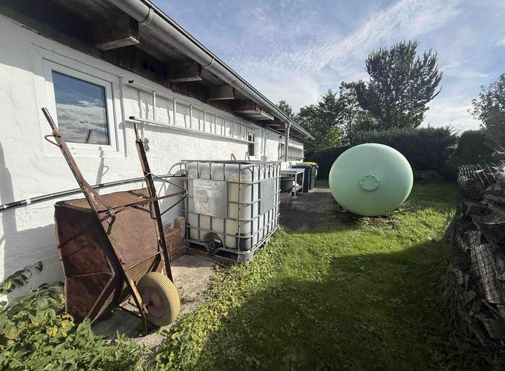 Der Flüssiggastank befindet sich im hinteren Grundstücksbereich.
