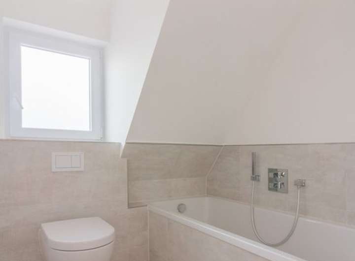 - Bad: Waschtisch mit Unterschrank, Wanne, neues WC, Handtuchheizkörper, Feinsteinzeug