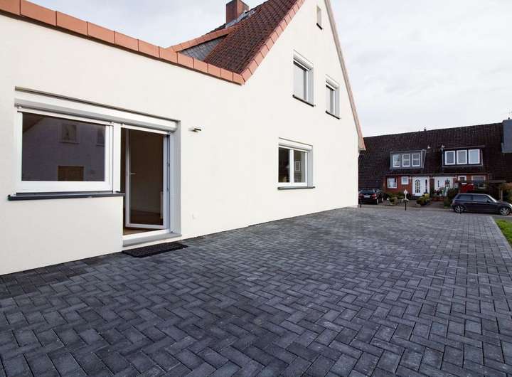 - neu gepflasterte Fläche (in anthrazit) vor dem Haus und Anbau/Doppelgaragen
