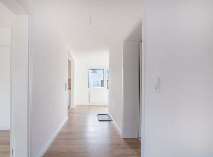 - hochwertiges Laminat und neue Sockelleisten in allen Wohn-/Schlafräumen und Flur, sowie Fliesen im Eingangsbereich