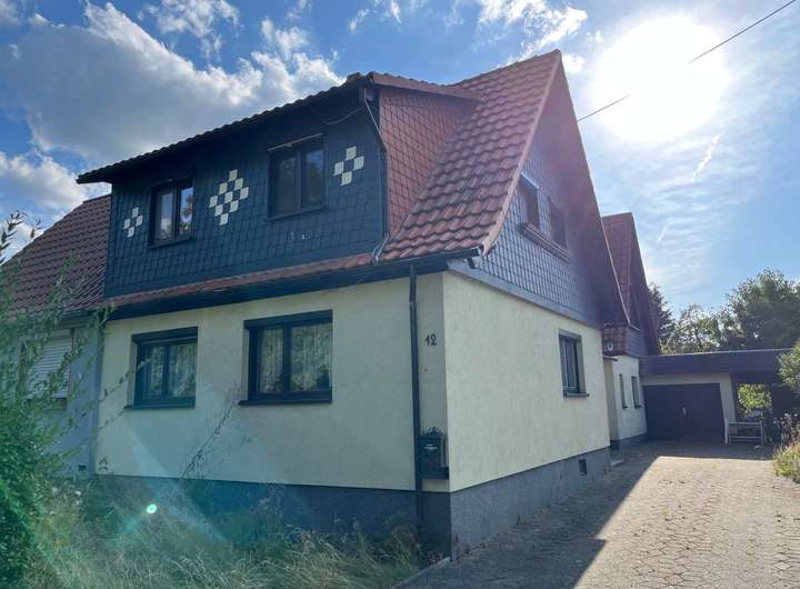 Die Doppelhaushälfte liegt in Eisenach-Hötzelsroda, einem charmanten Stadtteil mit ländlichem Charakter und dennoch guter Anbindung an das Stadtzentrum von Eisenach.