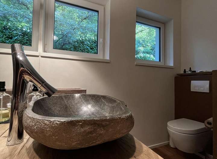 Dieses Zuhause spricht Menschen an, die Einfachheit als Luxus verstehen, Atmosphäre wahrnehmen und ein natürliches Umfeld lieben. Verschiedene Terrassen, ein Naturpool mit Außendusche sowie eine Sauna schaffen Raum für Rückzug, Erholung und Begegnung. Das bestehende Baufenster eröffnet architektonischen Spielraum für Erweiterungen, ohne den Charakter des Hauses zu stören.