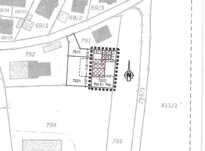 Eine in der Vergangenheit genehmigte Bauplanung ist vorhanden, die übernommen werden kann. Genehmigt sind EG + 1. OG + DG ohne Kniestock; Grundfläche 91,8 qm. (11,49m x 7,99m) (Gesamtwohnfläche 188,13m²), inkl. Doppelgarage oder Außenstellplatz