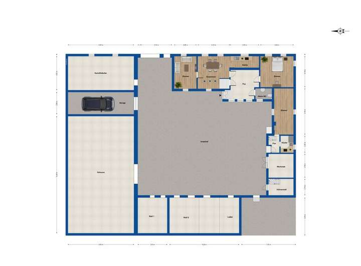 Ein besonderes Highlight der Immobilie ist der weitläufige Innenhof, der vielfältige Möglichkeiten zur individuellen Nutzung bietet – ideal zum Entspannen, Gärtnern oder für gesellige Stunden im Freien.