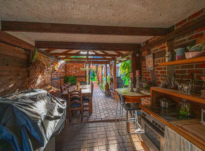Auf dem sehr schönen, ruhigen Gesamtgrundstück in Winsen/Aller OT Meißendorf, stehen 3 Wohnhäuser mit unterschiedlichen Größen. Im vorderen Bereich wurde das Fachwerkhaus gebaut. Über eine gemeinsame Zufahrt erreichen Sie die beiden weiteren Häuser. Das Fachwerkhaus mit seinem Garagenanbau ist großzügig gebaut und bestens für die Familie mit Kindern geeignet. Die dahinter liegenden beiden Häuser sind miteinander verbunden. Dennoch haben beide Häuser ihren eigenen Bereich im Garten. Diese Häuser eignen sich sehr gut für weitere Generationen oder zur Dauervermietung bzw. ggf. Ferienhäuser. Alle drei Häuser sind sehr gepflegt und mit jeweils hochwertigen Einbauküchen ausgestattet. Folgende besondere Ausstattung ist jeweils vorhanden: Fachwerkhaus, Haus-Nr. 11: - Wohnfläche ca. 137 m² - Nutzfläche ca. 60 m² - Sprossenfenster - Rollläden - Kaminofen - sichtbares Fachwerk innen - Doppelgarage + Fahrradgarage von innen erreichbar und mit funkgesteuerten Toren - Einbauküche aus 2018 mit Induktions-Kochfeld - wohnlicher, überdachter Außensitzplatz zum Grillen - zusätzlicher, überdachter Terrassenplatz - sehr gepflegter Garten mit gemütlichen Sitzplätzen - Beregnungsanlage - Mähroboter Grundriss Fachwerkhaus EG: - großzügiger Wohn- /Essbereich - moderner Kaminofen, zentral im Wohn- / Essbereich - große Küche mit Zugang in HWR, separater Dusche, Abstellraum und Garagen - großes, modernes Bad mit flacher Duschtasse und Edelstahl Duschpaneel Grundriss Fachwerkhaus DG: - drei Schlafzimmer - ein Ankleidebereich - ein Duschbad Raumaufteilung und Ausstattung Wohnhaus mit Haus-Nr. 13: - Wohnfläche ca. 79 m² - Nutzfläche ca. 15 m² - EG Kochen-Essen-Wohnen inkl. hochwertiger Einbauküche - EG Kellerzugang (1 Raum) von der Küche aus - EG modernes Badezimmer mit Badewanne und Duschbereich - EG Gäste-WC - EG Einbauschrank im Flur - DG ein großes, durchgehendes Schlafzimmer Raumaufteilung und Ausstattung Wohnhaus mit Haus-Nr. 13 A: - Wohnfläche ca. 76 m² - Nutzfläche ca. 35 m² - EG Wohnzimmer mit Kaminofen und Sichtfachwerk - EG Große Wohnküche mit moderner Einbauküche - EG modernes Gäste-WC - EG modernes Badezimmer mit Badewanne und Dusche - DG Schlafzimmer 1 mit überdachtem Balkon - DG Schlafzimmer 2 mit Einbauschränken - DG Flur mit Einbauschränken Der angebaute Garagenbereich mit Abstellraum kann sowohl von der Hausnummer 13 als auch Hausnummer 13 A genutzt werden.