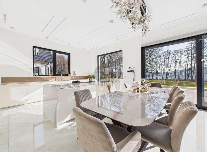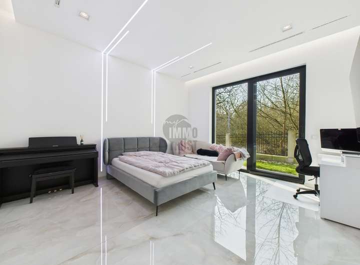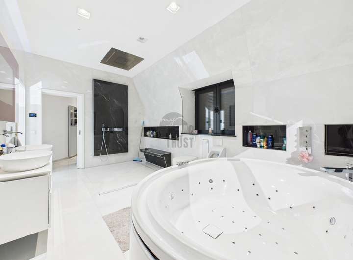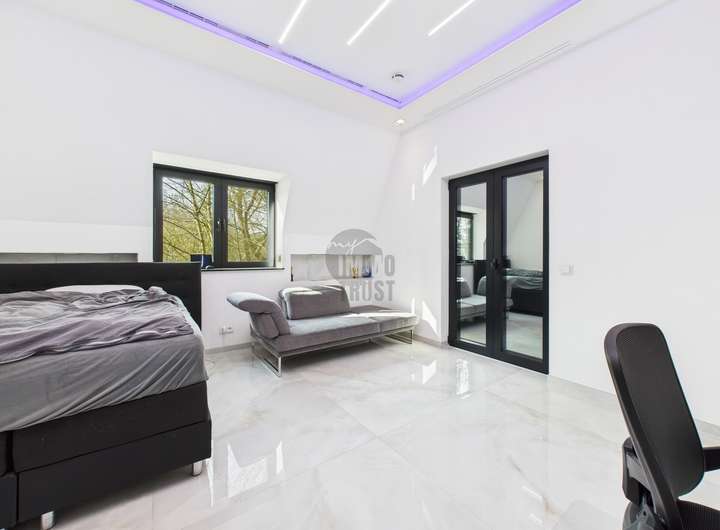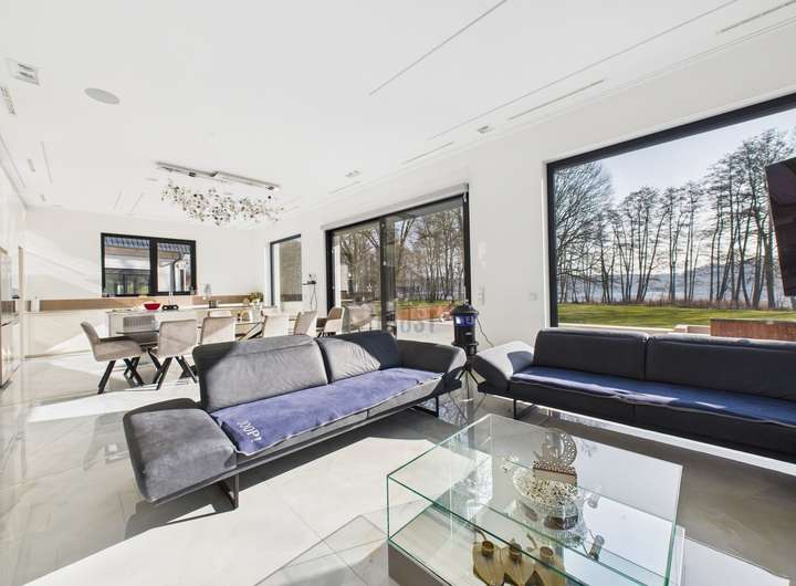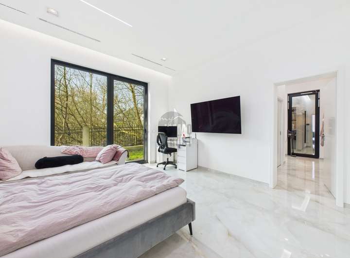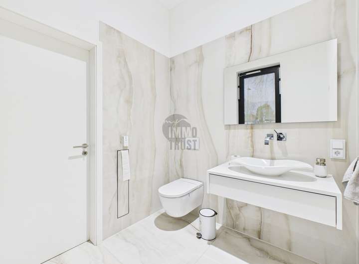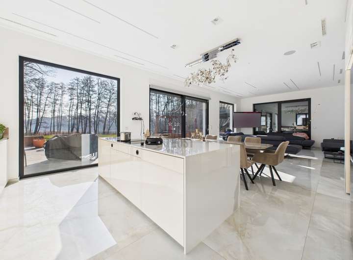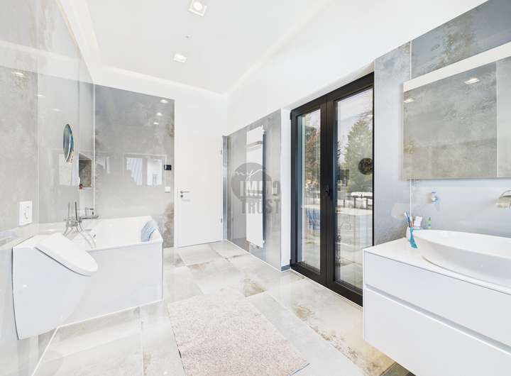 Das Herzstück des Hauses bildet der lichtdurchflutete Wohn- und Essbereich mit Panoramablick auf den See. Hochwertiger Marmorboden, bodentiefe Fensterfronten und eine exklusive Einbauküche mit modernster Ausstattung schaffen ein Ambiente von unvergleichlicher Qualität. Vier stilvolle Schlafzimmer und vier luxuriös ausgestattete Badezimmer, darunter ein Spa-Bad mit Regendusche und Whirlpool inklusive TV, bieten höchsten Wohnkomfort und pure Entspannung.