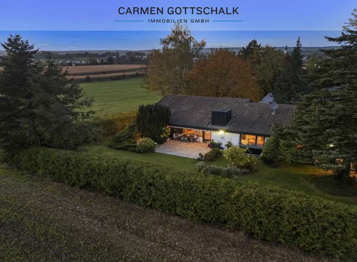 Der beeindruckende Panoramablick nach Süden und Westen bietet eine atemberaubende Kulisse aus weiten Feldern und Wiesen. Hier genießen Sie ein Gefühl von Freiheit und grenzenlosem Raum – die Natur wird zum ständigen Begleiter.