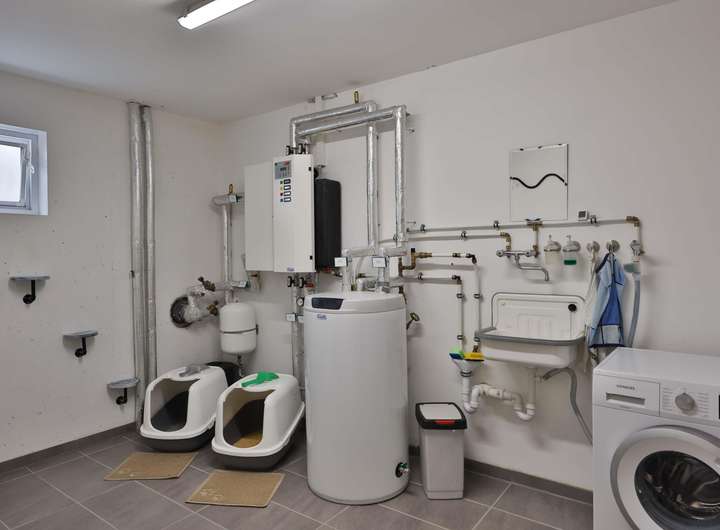 Neben der Einliegerwohnung gibt es im Untergeschoss außerdem eine Speisekammer, einen Kellerraum und einen großzügigen Hauswirtschaftsraum mit Waschmaschinenanschluss.