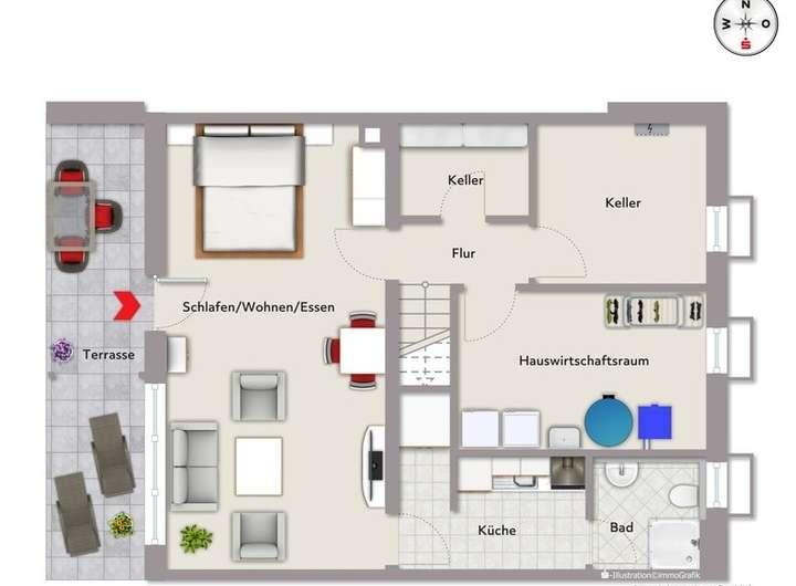 - eigenständige Wohnung im Souterrain mit Küche und Badezimmer