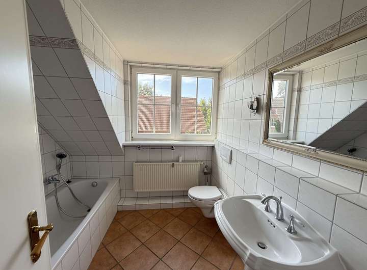 Im Obergeschoss erwarten Sie drei helle und komfortable Zimmer, die sich flexibel als Elternschlafzimmer, Kinder- oder Arbeitszimmer nutzen lassen. Das gepflegte Tageslichtbad ist sowohl mit einer Badewanne als auch mit einer separaten Dusche ausgestattet und bietet damit höchsten Komfort für die ganze Familie.